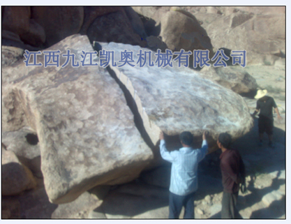 分裂:在8立方米的“新疆红”孤石上打5个孔后,五条分裂枪同时分裂,分裂时间只要十几秒钟、大块顽石立刻被分裂开。